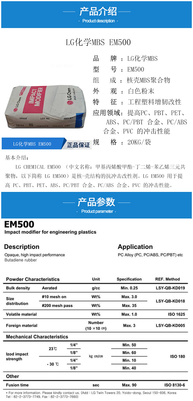 - MBS增韧剂 韩国LG EM500 抗冲击改性剂 PC ABS工程塑料增韧 mbs50 物性表, MBS增韧剂 韩国LG EM500 抗冲击改性剂 PC ABS工程塑料增韧 mbs50 产品参数,MBS增韧剂 韩国LG EM500 抗冲击改性剂 PC ABS工程塑料增韧 mbs50 性能表,MBS增韧剂 韩国LG EM500 抗冲击改性剂 PC ABS工程塑料增韧 mbs50 出厂报告, MSDS,, 物质安全资料表, UL黄卡,{ SGS报告, RoHS, 食品级认证, NSF饮用水标准, 产品资料, 产品性能, 出厂报告, 原厂原包, 代理商, 热变形温度, 熔指数, 流动系数, 抗冲击性能、冲击强度, 低温韧性、低温抗冲击性能, 熔体流动系数、熔体流动速率, 加工工艺、加工参数、加工温度, 欧盟RoHS 德国FDA 美国FDA 日本FDA